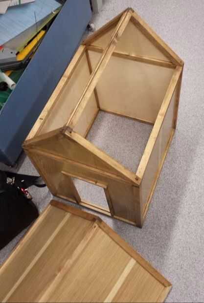 Me pregunté si haría un perro relacionados con arte. Me dio pensar y decidió que quería estirar mis chuletas de fabricación y hacer una caseta de perro. Este es por lejos el proyecto más grande que he probado. Yo quería que fuera un Cayo casa de play