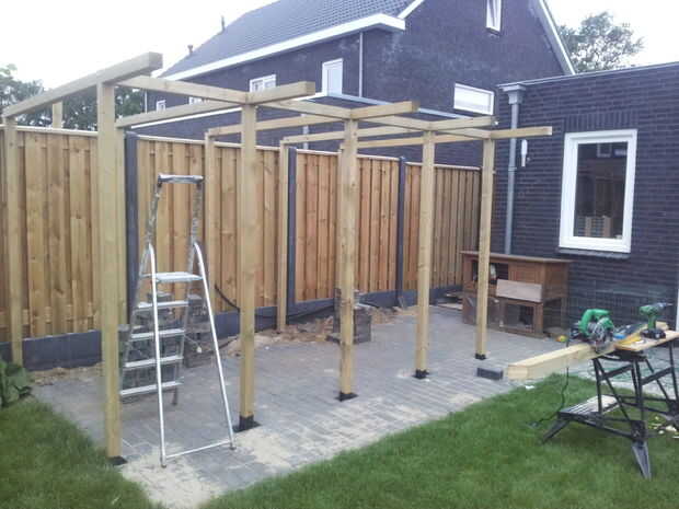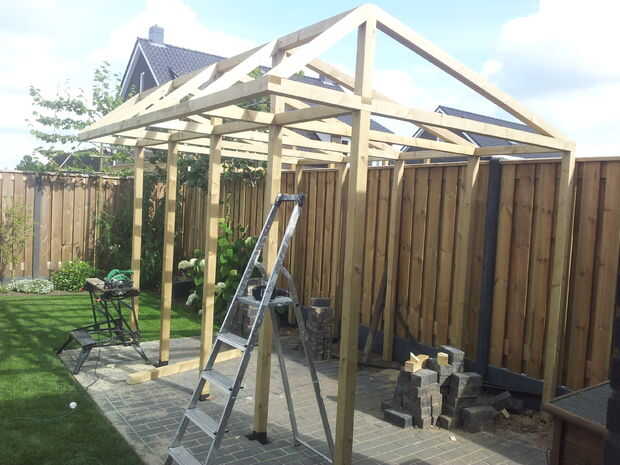 Además de tornillos de acero inoxidable también usé woodglue puesto que lo que realmente hace para una conexión fuerte. Tenga en cuenta que hice el palillo 'vigas del anillo' fuera un poco para hacer un poco saliente.