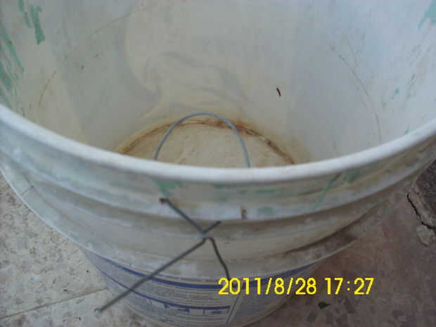 3-hacer dos agujeros en el lado del cubo con martillo y un clavo (ver fotos).