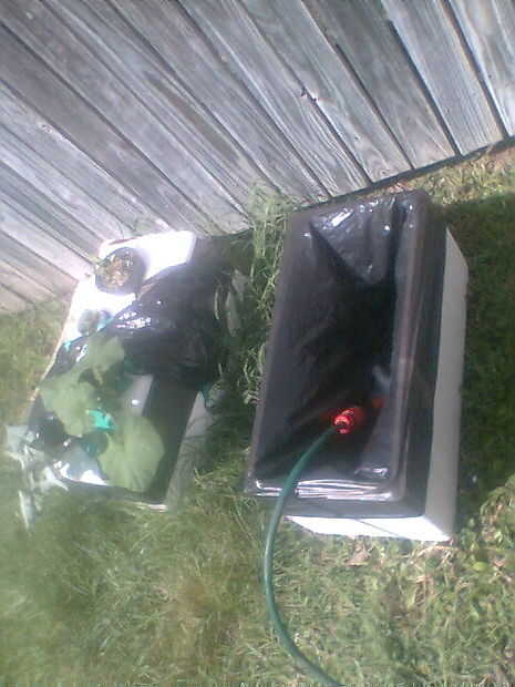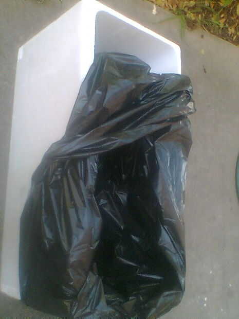 Línea con una bolsa de plástico negra, esto es causa de estireno utilizado para hacer poliestireno puede ser absorbido por las plantas, lo que los hace peligrosos para el consumo y eventaully las plantas serán enfermas.