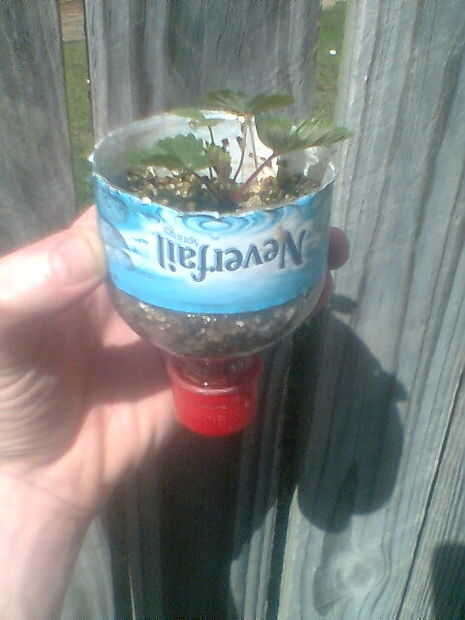 3. tornillo de las tapas, invertir 1/2 botella relleno con medio húmedo.