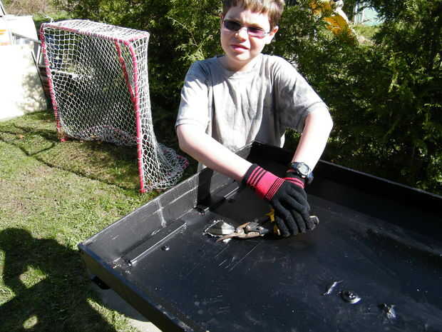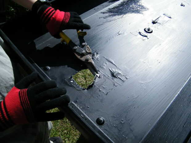 Corte los orificios de ventilación • utilice un martillo y un destornillador a la huelga "punch out" en el centro de cada extremo. • Corte los orificios cuadrados, un poco más grande con las tijeras de metal y si instalar un pequeño ventilador para ayudar a salir el aire caliente en la parte superior marque antes de hacer hoyo más grande. usted tendrá que hacer un poco más pequeño para permitir el montaje con el panel de yeso tornillos (tornillos de pared seca cortará sus propias roscas en la lámpara) guantes para protegerte las manos. • Cinta de las aberturas de corte después de tan hay ningunos filos.