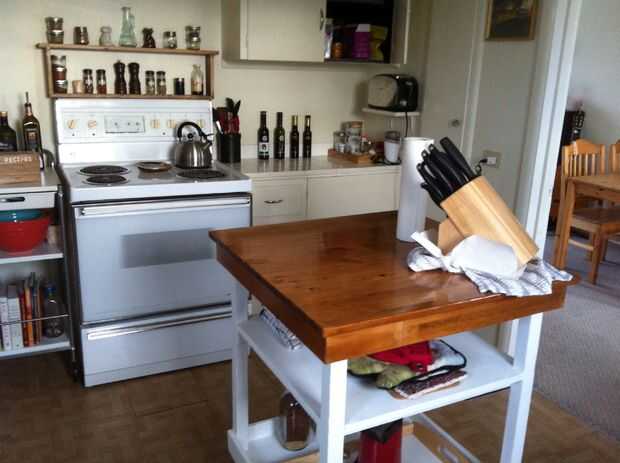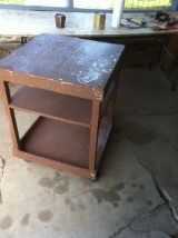 Vi un viejo carro de la herramienta y una mesa de centro de Ikea de pino macizo, y pensé isla. Ambos eran menos de 15 minutos de mi casa y ambos estaban libres. Llevé casa. Mi esposa gimió... un poco. He introducido estos dos elementos en mi cochera y se puso a trabajar.