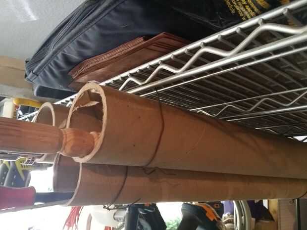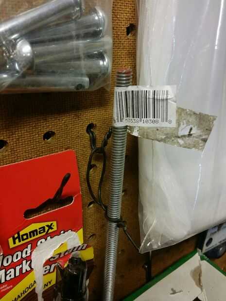 Organizar cosas largo pitillo colgando algunos tubos de cartón debajo de estantes y atar para arriba allí con... atar alambre!