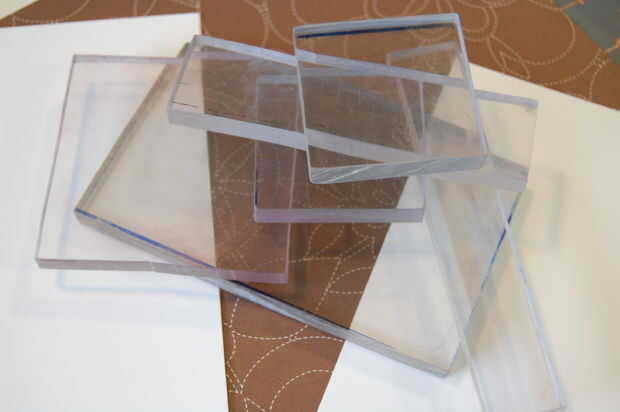 Utiliza la herramienta de corte (utilicé una sierra de inglete), de corte a lo largo de las líneas marcadas para hacer sus bloques de Lexan.