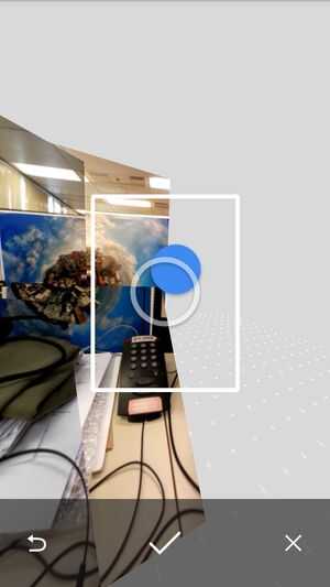 Cuando la bola se queda dentro del círculo por un momento se pone azul y el teléfono automáticamente toma la foto. Entonces se puede girar el teléfono para hacer la siguiente.