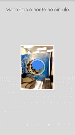 Cuando entras en la aplicación y elegir el modo de la esfera de la foto, se mostrará un marco pequeño en el centro del teléfono, como en la segunda imagen. Muestra un círculo filtrado fijo en el centro de la estructura y una bola flotante, que deben intentar colocar en el medio del círculo moviendo el teléfono.