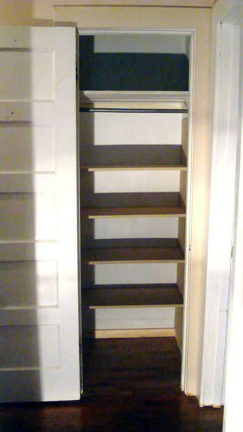 estantería armario fácil. Sin herramientas. Sin sujetadores. Montado en minutos. Se desarma rápidamente. Costo total: $48,00.Paso 1: Sólo 2 partes: estantes... El armario en cuestión mide 22" de profundidad, 64" ancho. La puerta es sólo de 47&qu