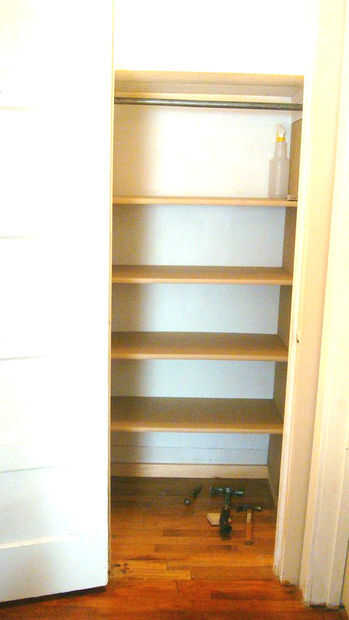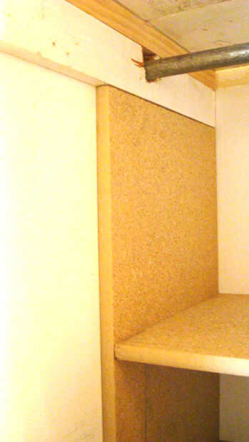 - Luego necesitas medir qué tan amplia es el armario para determinar la longitud de la Junta para hacer la plataforma. Recuerda a medir el frente y hacia atrás para asegurarse de que son cuadrados y si no son cuadrados necesitas utilizar la longitud más corta a menos que usted tiene un amigo o pariente que puede cortar perfectamente para usted. Estantería de todos viene en 3/4 de pulgada de espesor por lo que necesitará deducir 1 1/2 pulgadas de la longitud del estante. Escriba esta medida sobre el diagrama de.