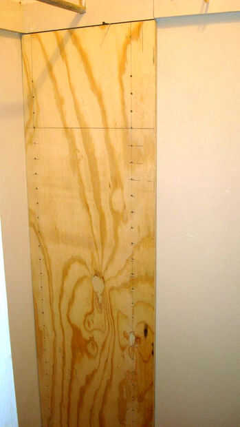 - Mirando la puerta, mida la izquierda (hacia atrás) de la parte superior de la placa base a la parte inferior de la placa de soporte de la barra.