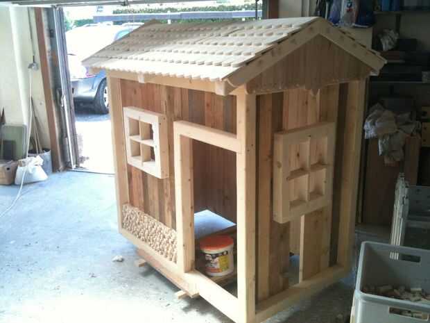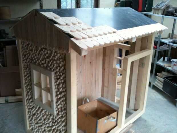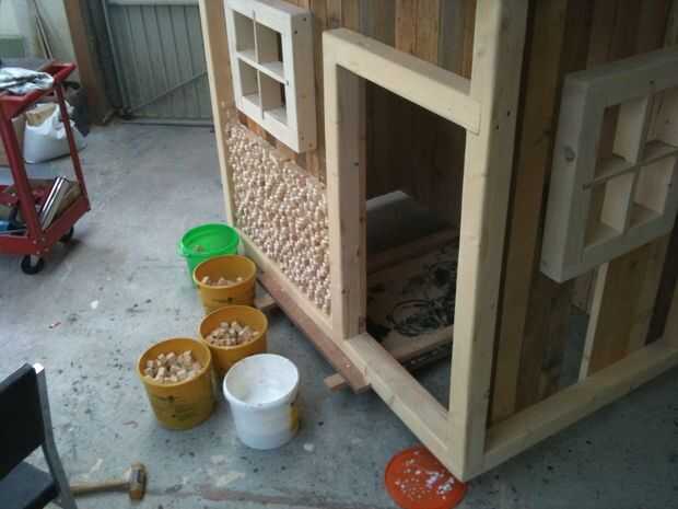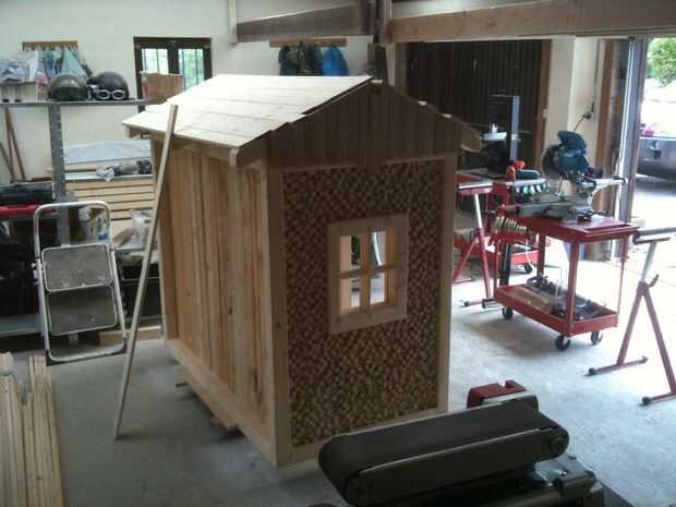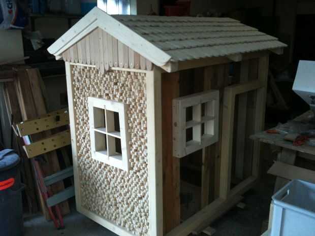 el tiempo fuera cambiado comenzó lloviendo por días mi todler consiguió tan aburren i thougt por qué no sólo construir él una casita de madera de madera reciclada es el resultado