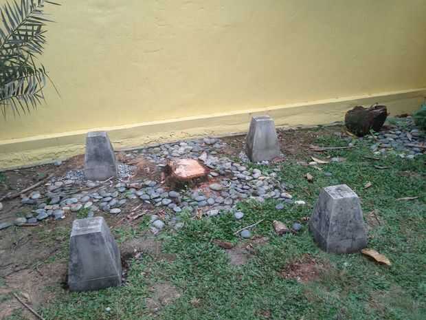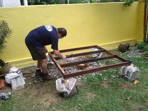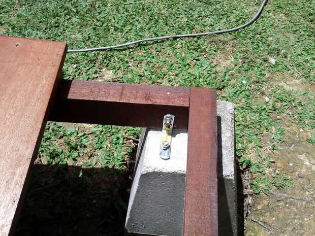 Después de los bloques en posición, el marco de madera de la base fue agregado y atornillado a los bloques.