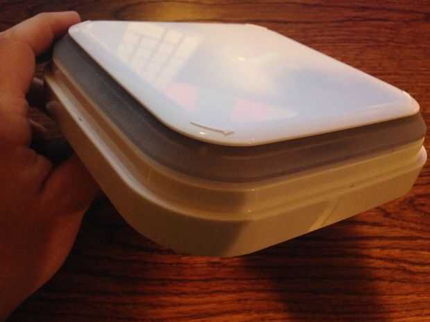 Asegúrese de que su contenedor es lo suficientemente grande como para caber su cámara y que logos ni imperfecciones en el plástico en su campo de visión. Hice este derecho en el almacén para asegurarse de que compré el tamaño correcto. También elegí un contenedor amurallado grueso (más 1/8 pulg.) con tapa resellable muy interesante (nota de la segunda foto).