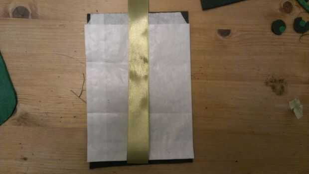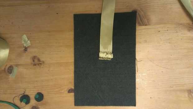 Coser el extremo de la cinta alrededor de la mitad de uno de los paneles de fieltro. Al final, la cinta se envuelva alrededor del elemento una vez y salido de la parte superior.