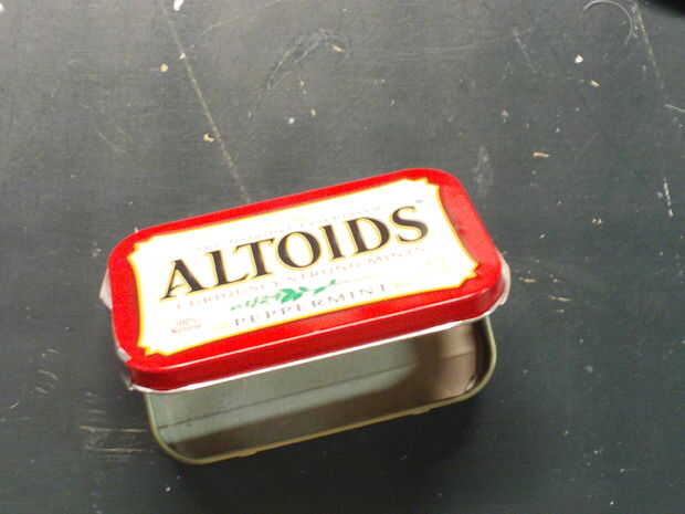 Este caso está hecho completamente de materiales reciclados (menos la cinta o el pegamento) puede realizarlo en cualquier lugar con notado o robado (pero no la deje sentarse al aire libre) parece una lata Altoids ordinario pero si lo abres tu amigo especial te está esperando!