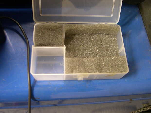Polvo metálico se crea cuando el arco de 10.000 grados F de la soldadora vuelve metal líquido, algún metal se vaporiza junto con cualquier aceite u oxidación y esto se mete en todo. Hemos perdido más de una placa base del ordenador a este polvo. También casi todo plástico acumula una carga estática que agarra este polvo. De alguna manera el polvo tiende a grabado en el plástico y es muy difícil de eliminar.