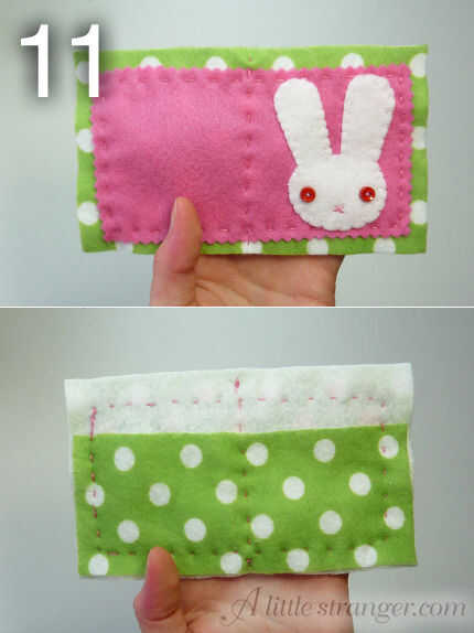 11) coser una línea recta por el centro de la caja. Se trata de cómo debe buscar ahora.
