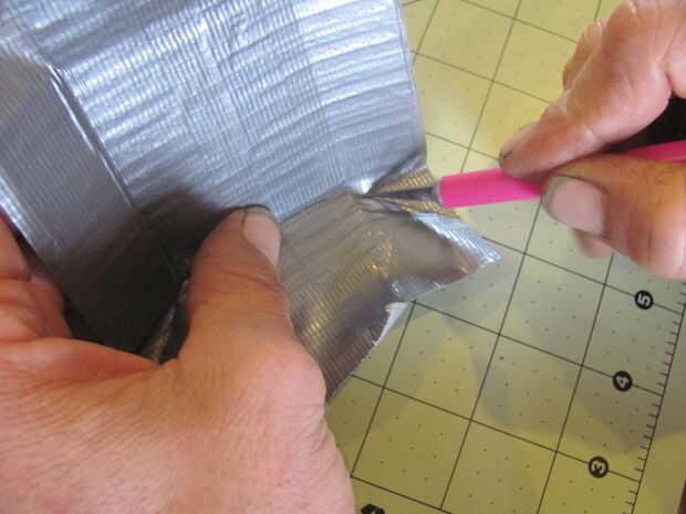 Pone la caja plana con el interior hacia arriba. Coloque cinta en el interior de la caja. Corte las esquinas de la cinta para permitir que la caja doblar.