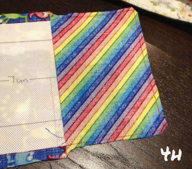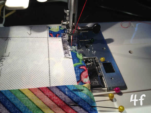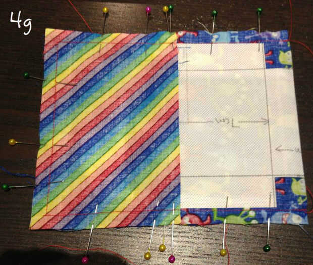 Coser alrededor de los tres bordes abiertos con una costura de 1cm (4f y 4g).