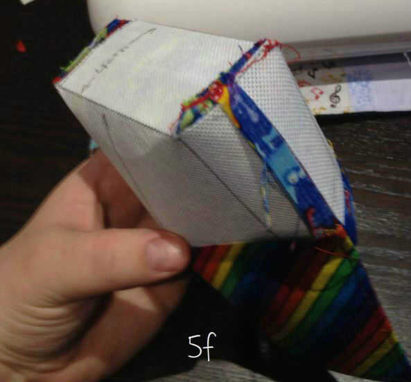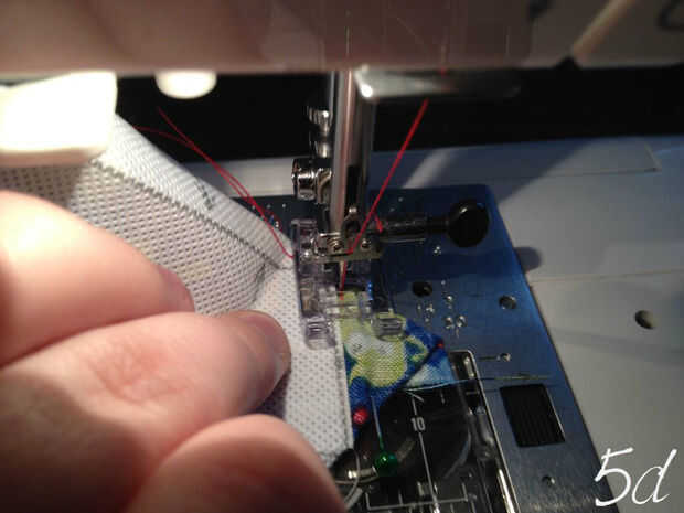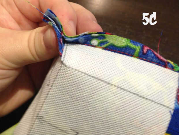 Coser en la parte inferior del triángulo han creado (5d). Repita para el otro lado.