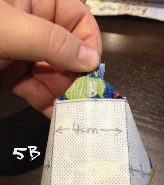 Esto debería haber creado un pequeño triángulo con la costura en su ápice (5b).