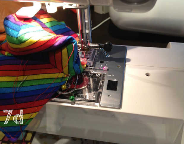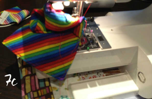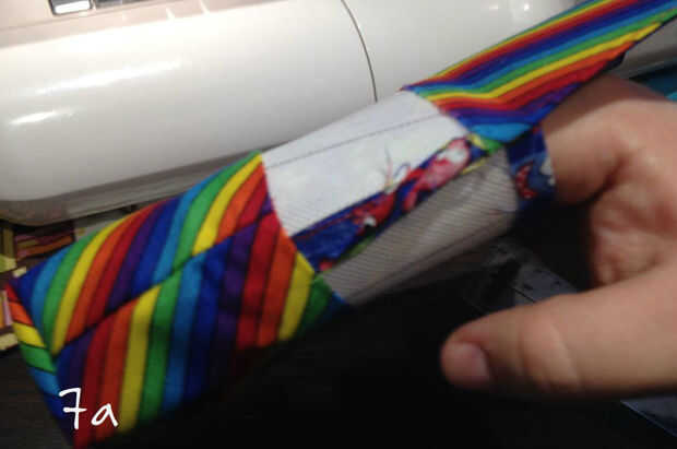 Ahora viene la parte difícil. Necesita coser en la parte superior de la bolsa exterior para garantizar ambos juntos (7C y 7D). Debido a la interfaz ultra firme esto es mucho esfuerzo, y usted tendrá que aplastar la bolsa algo para que funcione. No te preocupes si todo parece ir muy mal, que luego se puede presionar la bolsa.
