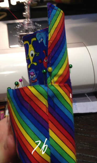 Una vez que la bolsa exterior está correctamente dentro de la bolsa interior, asegúrese de que todos los bordes y las costuras se alinean correctamente y prender (7b).