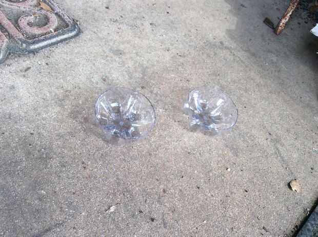 Cortar las botellas por encima de los guiones en la parte inferior. Entonces les laven. Si no están ya limpias.