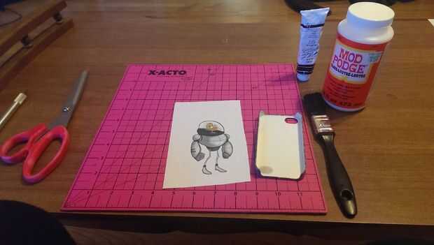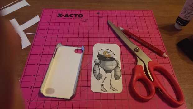 Imprimir: Imprimir el diseño de su elección para la parte posterior de la caja del teléfono en pedazos regulares de papel de impresión (2-3 copias si quieres aberturas prueba uno o dos). Deje que la tinta seca bien.