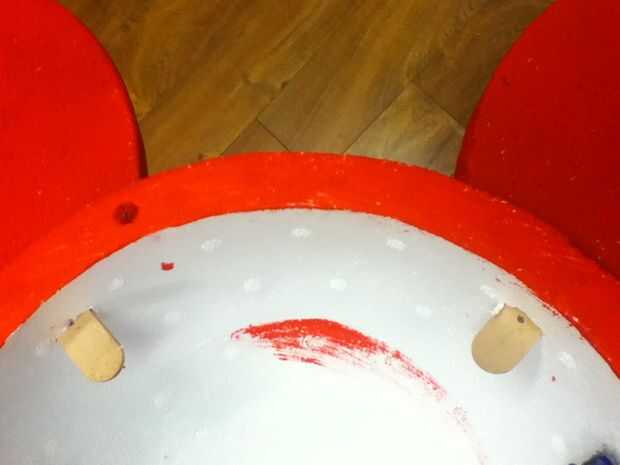 Debe utilizar el panel grande de espuma de poliestireno para cortar las orejas. Primero agarras un cuchillo, gran trabajo de exacto, entonces ligeramente marque en la espuma para demostrar donde vas a cortar. A continuación usted Deslice la espuma, una vez su corte con el cuchillo, la espuma con papel de lija de la arena. No ven bien no es lijar uniformemente. Hacer un agujero para que un popsicle stick puede caber, que sea cómodo. Añadir un palito en la parte curva que va en el casco.
