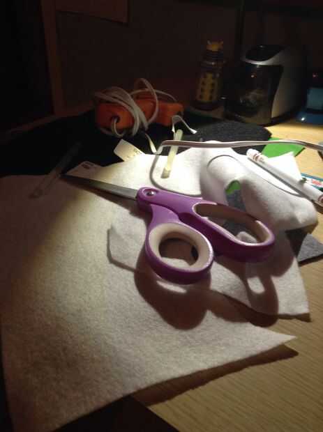 Gris, blanco, negro y verde fieltro, un lápiz o marcador, hilo y una aguja, tijeras y pegamento caliente. También, si no tienes buena mano libre dibujo, plantillas para un óvalo, triángulo, diamantes y círculos de diferentes tamaños.