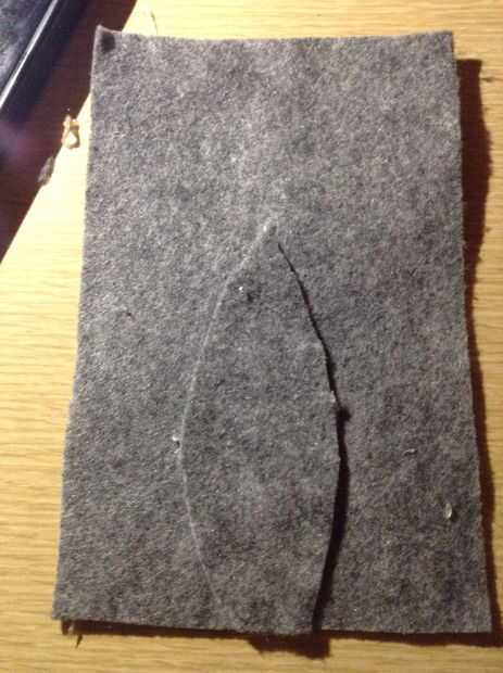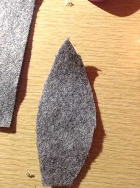 Tomar el otro trozo de fieltro gris para pegar la cola. Para hacer la forma de la cola, tomar algunos fieltro gris y cortar una forma oblonga. Puede verse como un dirigible. Este pegamento en la parte trasera del rectángulo gris.
