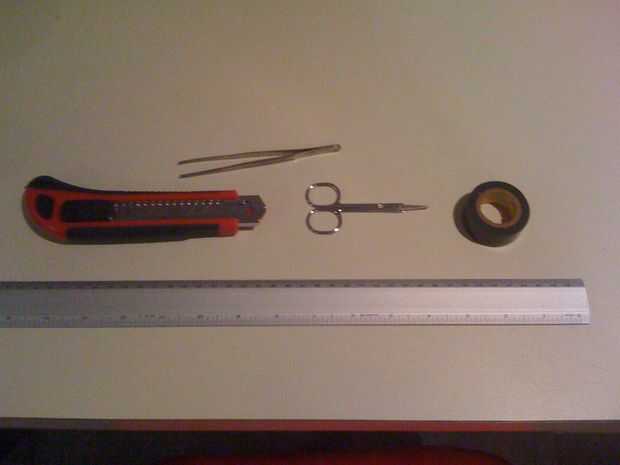 DIY iphone dock utilizando solo el material del paquete.Se necesita:Cuchillo x 1Regla x 1Cinta de doble cara x 1Delgadas de un solo lado de la cinta (cinta de embalaje hará) x 1caja de iPhone con soporte de plástico x 1cable USB que viene con el ipho
