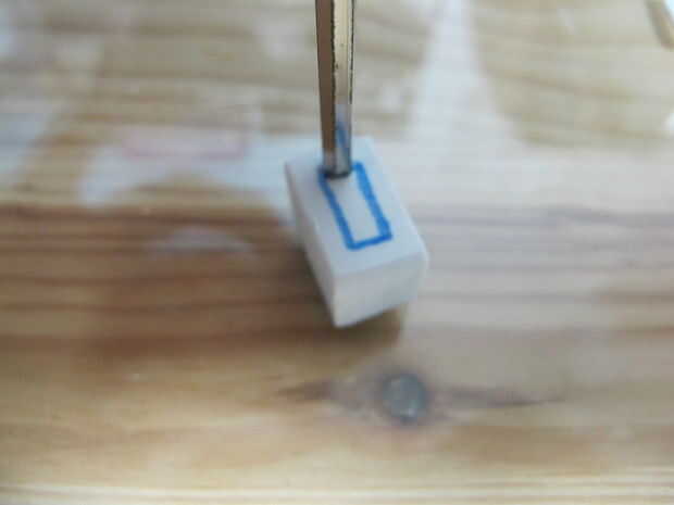 Luego se hará un esbozo de la USB y se apuñala el borrador con el destornillador plano alrededor de la línea de salida.