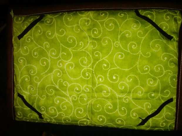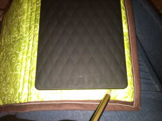 Para mantener el lector de libros electrónicos en su lugar, usted necesita fijar 4 pedazos de elástico en el interior cubierta. Dibujó en las esquinas de mi lector de libros electrónicos en su lugar y luego cortar 4 pedazos de elástico cada medida 4cm de largo. Estos fueron cosidos en su lugar con una simple puntada atrás, y luego las colas de los hilos de rosca fueron tiradas a través de la tela para ocultarlas (nudo en el extremo, empuje la aguja en la tela de alrededor de una pulgada y hacia arriba otra vez Tire firmemente, luego corte el hilo. El extremo suelto debe desaparecer en el tejido).