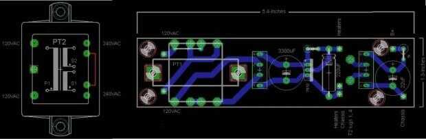 Los transformadores que había enumerado son unas que tuve puesta alrededor y PT2 se equivocaba en su amperaje límite--puede utilizar 546-186B120 para PT2. Sus secundarios (terminales 5 y 8) se une directamente a la IEC y poder cambiar en paralelo con T1, las primarias (lengüetas de 1 y 4, con 2 y 3 soldados entre sí) hacer sobre 330VDC rectificado. La tensión extra hará que las válvulas te amo mucho.