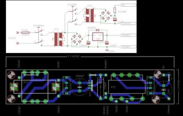 Esta fuente de alimentación especial le dará una 12Vcc regulado para los calentadores y 290VDC no regulada de la fuente de B +. Una resistencia más grande que la 1 k 1W o una estrangulación obtendrá una tensión más baja--sentí que 290VDC es un buen punto de partida.