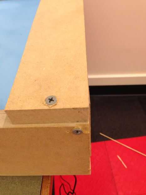 Tomar 4 2" tornillos y perforar los extremos de las piezas de proyección en las esquinas de los lados