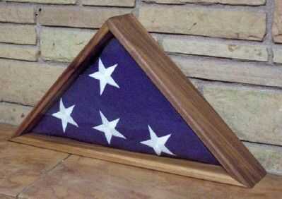Cuando alguien en los Estados Unidos que sirvió en las matrices de las fuerzas armadas, una guardia de honor militar presenta una bandera estadounidense plegada a la familia en el servicio de internamiento de la tumba. Muchas personas comprar o hacen una caja de madera bandera triangular con un frente de vidrio. Aunque se puede tener un caso de bandera barato para tan poco como $20 USD, un caso digno de madera maciza puede costar sobre $100 USD.