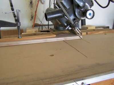 Las piezas se cortan de los lados opuestos de la sierra porque uno debe ser el espejo o el retroceso de la otra. Siempre me marca el perfil del corte en el borde de la madera con un lápiz así que estoy menos tiende a confundirse y arruinar un buen trozo de madera por cortar el inglete en la dirección equivocada. Ver la segunda foto.