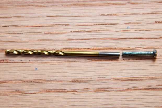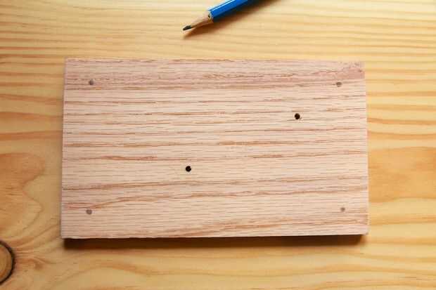 9) ponga un 1/4" bits en su taladro, coloque las piezas de roble en la madera y taladro 4 agujeros nuevos, uno para cada marca que acaba de hacer.