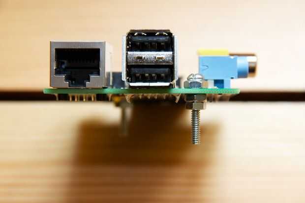 13) tomar dos más #4 tuercas y tornillo en los tornillos, ligeramente intercalando la Junta Directiva de la pi (ver foto #3).
