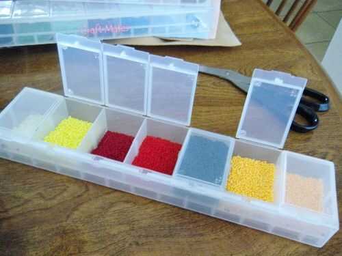 Si usted elige utilizar los granos he mostrado aquí que usted puede recoger en cualquier tienda de artesanía. Vienen en tubos de plástico pequeño y se conocen como granos de cristal o granos de la semilla.
