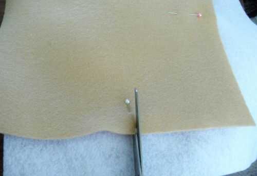Tomar tus tijeras y cortar toda la longitud de la pieza de fieltro a lo largo de la clavija de medición utilizado para marcar el ancho como se muestra en mis fotos.