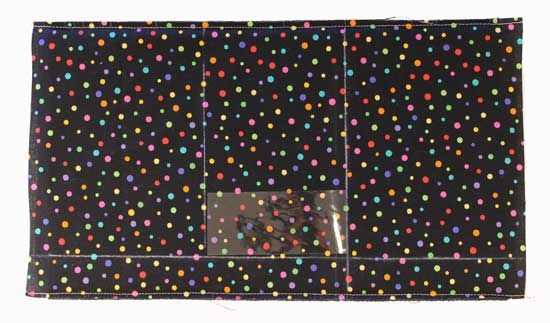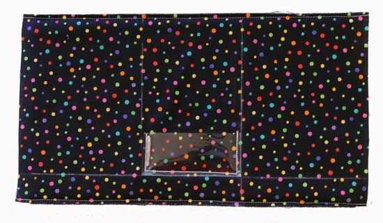 1. en el lado de la tela principal, marque una línea horizontal de 12¾" 1" de la parte inferior y las líneas verticales 4½" en cada lado. Alinee el bolsillo de vinilo transparente entre las líneas verticales con la parte inferior a lo largo de la línea horizontal marcada.