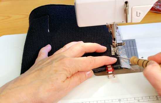 Consejo: Para hacer esto fácil, quite la cama de la máquina y coser el brazo abierto.