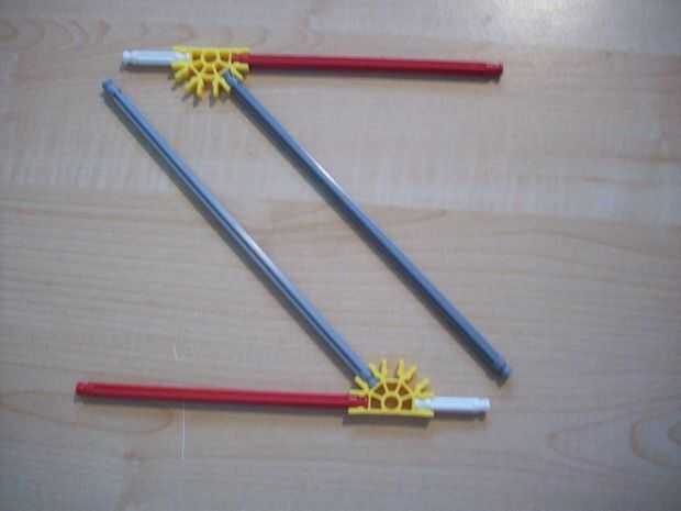 Esta es la parte de apoyo. Existe fuera de 2 barras diagonales gris con cada uno un conector amarillo. En es un conector rojo y blanco a los lados como se muestra en la pickture.