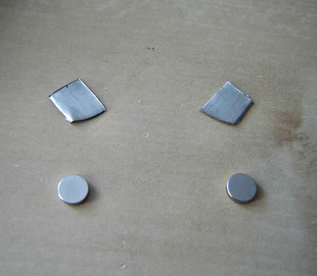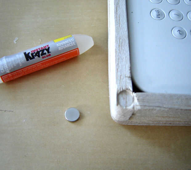 he utilizado un par de imanes para mantener la cubierta frontal cerrada.  Con pegamento estupendo os adjunto pequeñas tiras de metal en la parte interior cubierta en las esquinas.  En las esquinas de las piezas de borde, que hice un par de guiones para los imanes se coloque de manera que al cerrar la tapa van a quedar al ras.  También pegué los imanes sobre con pegamento.