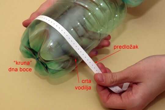 Una plantilla simple puede encontrarse al final de este proyecto. Descargar la plantilla, imprimirla, corte una tira de la plantilla y cuidadosamente pegue la cinta en la botella. PA ~ ljivo promotrite dno boce. Iznad "krune" uo ete tanku crtu nastalu u procesu proizvodnje boce. TA je crta idealna vodilja za postavljanje predloaka za buaenje rupica. Frotar predloaka polo ~ ite uz spomenutu crtu, omotajte ga oko boce me pri vrstite ga selotejpom.