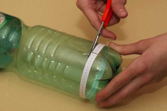 a través de una abertura realizada introducir tijeras y cortar la parte inferior de la botella.